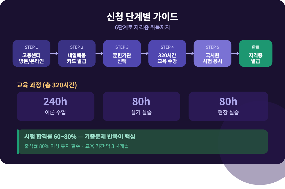 가까운 고용복지플러스센터 를 방문하거나, 고용24 사이트(www.work.go.kr) 에서 온라인으로 신청할 수 있다.